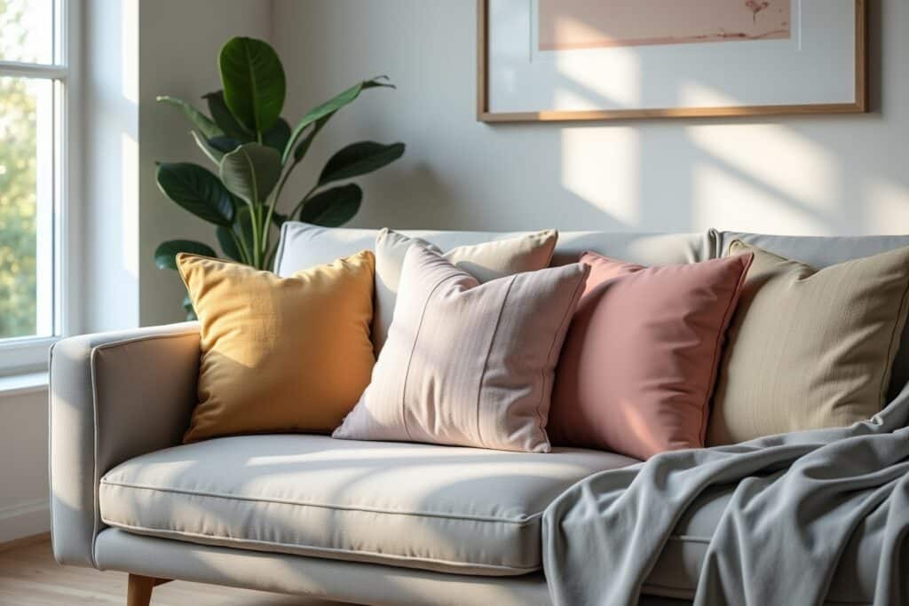 Die Haptik der Kissen trägt maßgeblich zum Komfort und zur Ästhetik bei. Eine Mischung aus verschiedenen Materialien kann deinem Sofa eine interessante Dimension verleihen.