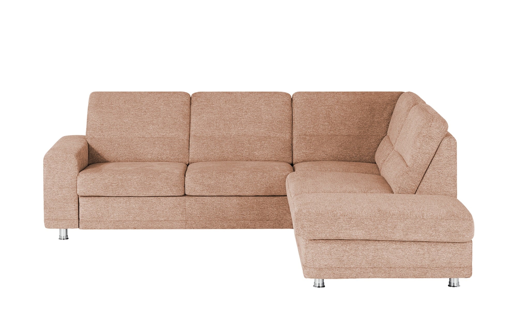 Die weiche Oberfläche des Bezugsstoffes fühlt sich angenehm auf der Haut an und lädt zum Kuscheln ein. Ob alleine oder zu zweit – auf dem Ecksofa Marc können Sie es sich so richtig gemütlich machen.