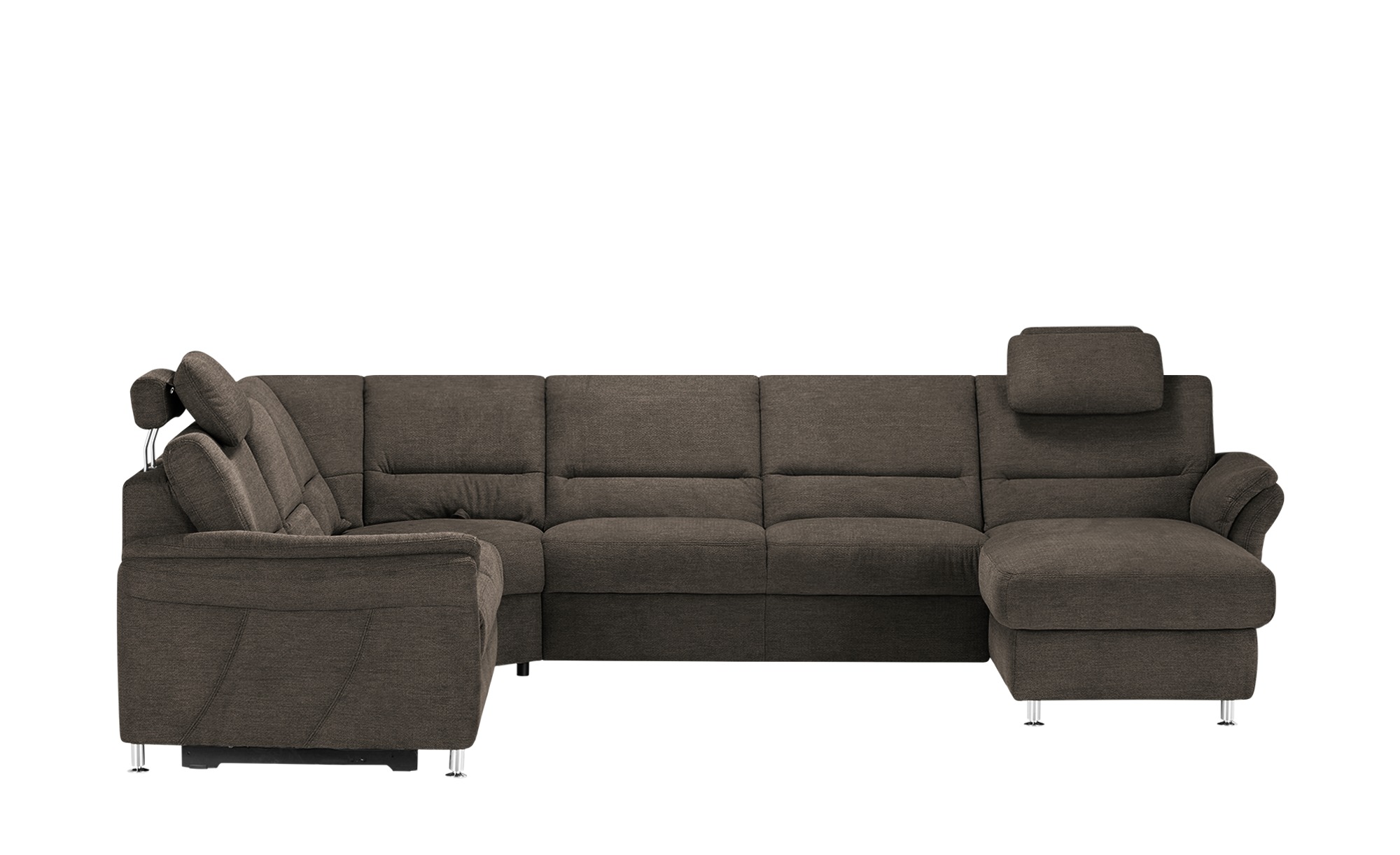 Das Design der Wohnlandschaft Donald ist zeitlos und dennoch modern. Das warme Braun des Bezugs harmoniert perfekt mit verschiedenen Einrichtungsstilen und verleiht Ihrem Wohnzimmer eine behagliche Atmosphäre. Die klaren Linien und die elegante Formgebung machen die Wohnlandschaft zu einem echten Hingucker.